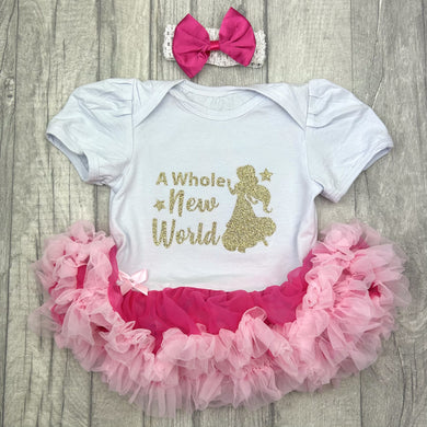 Aladdin Theme, Princess Jasmine, A Whole New World Baby Girl Tutu Romper With Headband