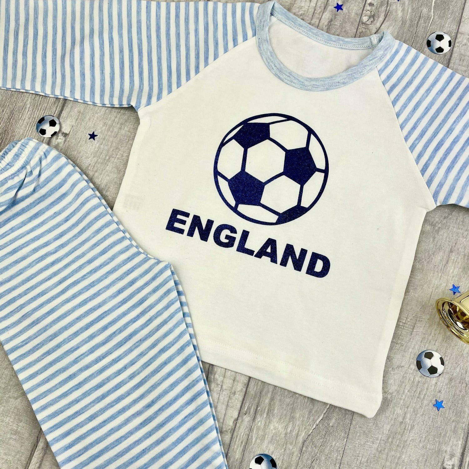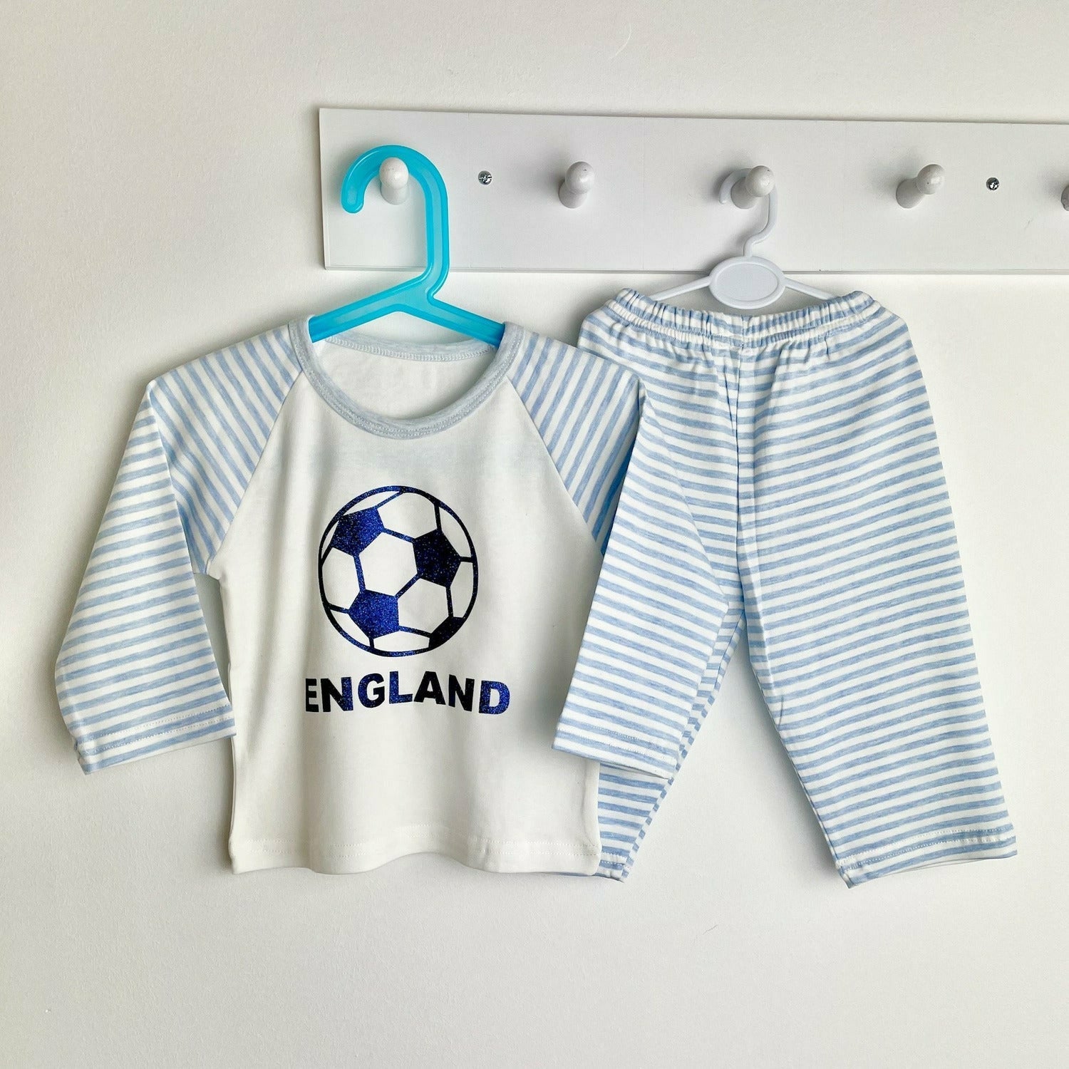 Our 'England' long sleeve blue and white stripe boys pyjamas are just too cute and the perfect gift to get your little one excited for the world cup!