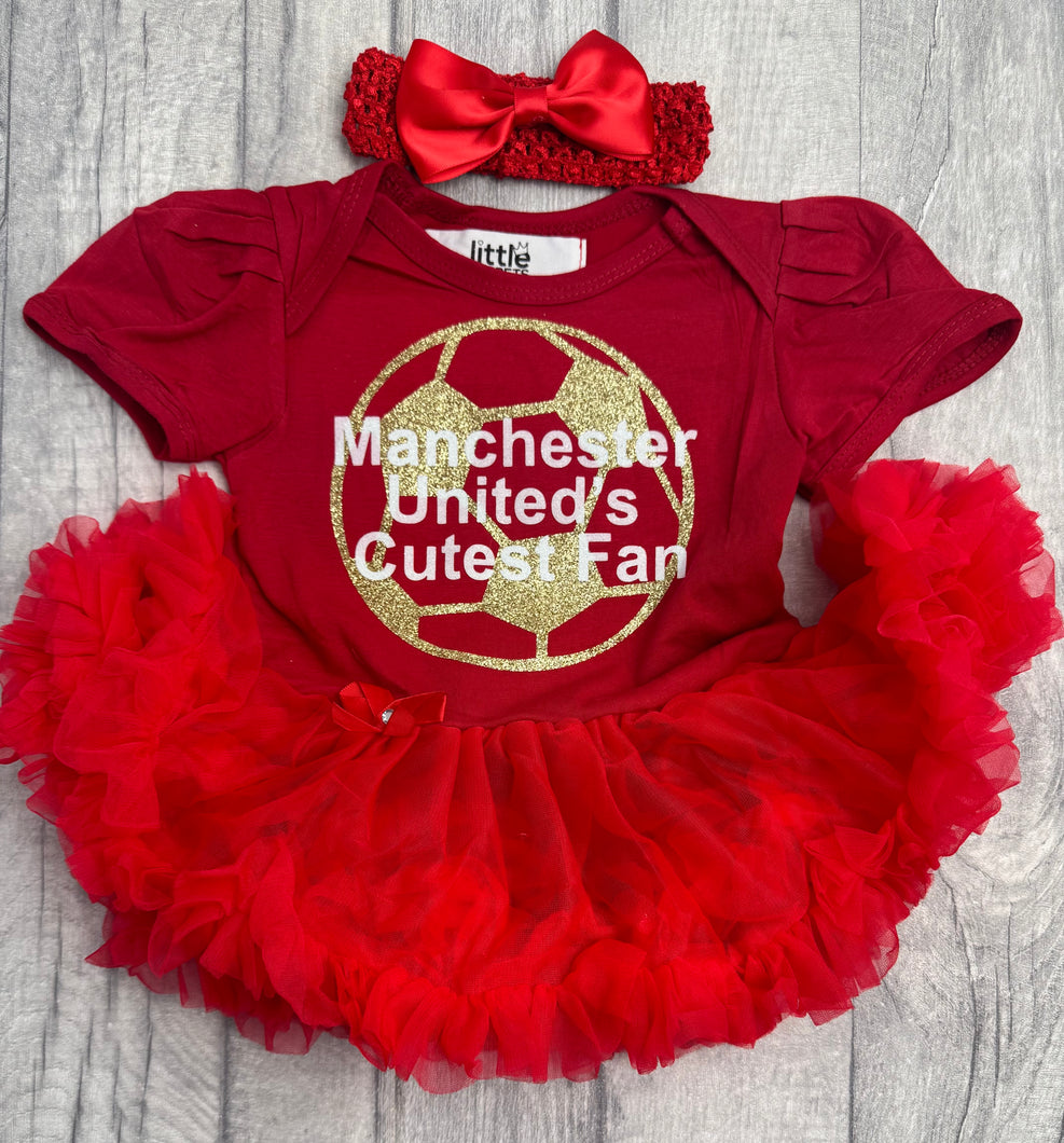Manchester's United Cutest Fan Football Tutu Romper DressManchester's United Cutest Fan Football Tutu Romper Dress